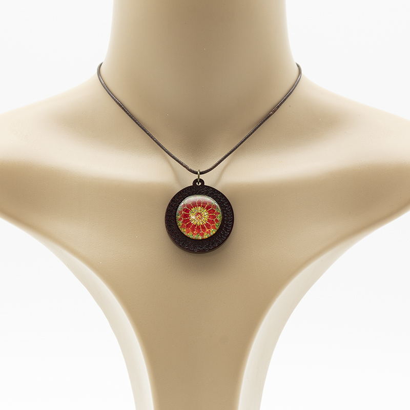 Ethno Halsketten aus Holz mit Glas Cabochon