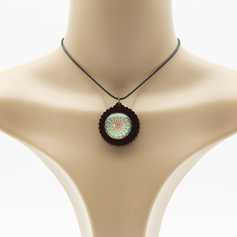 Ethno Halsketten aus Holz mit Glas Cabochon
