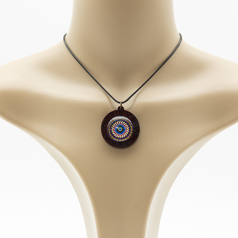 Ethno Halsketten aus Holz mit Glas Cabochon