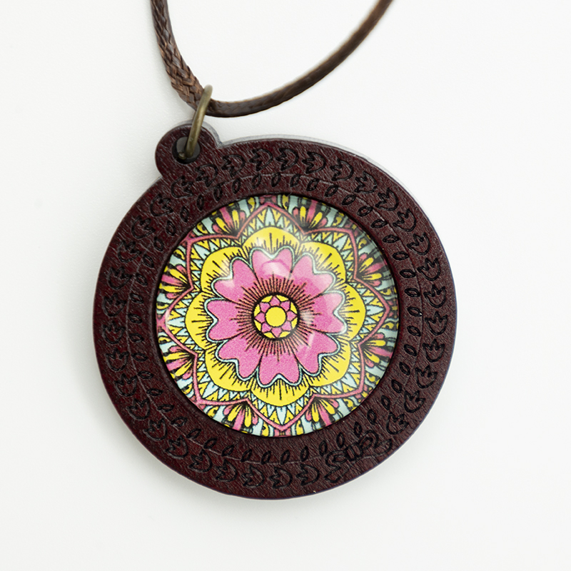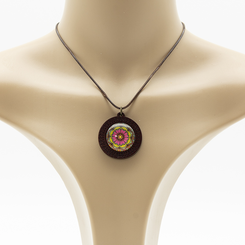 Ethno Halsketten aus Holz mit Glas Cabochon
