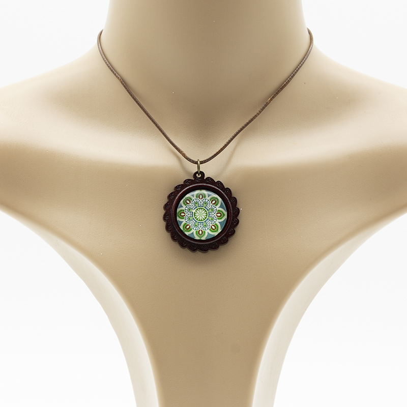 Ethno Halsketten aus Holz mit Glas Cabochon