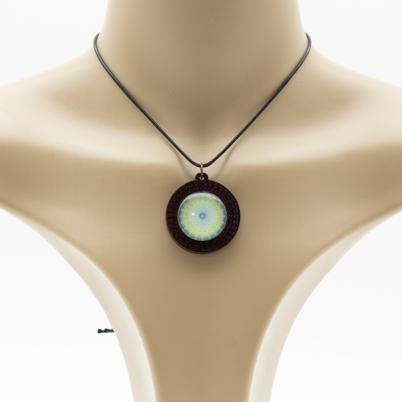 Ethno Halsketten aus Holz mit Glas Cabochon