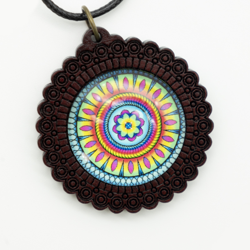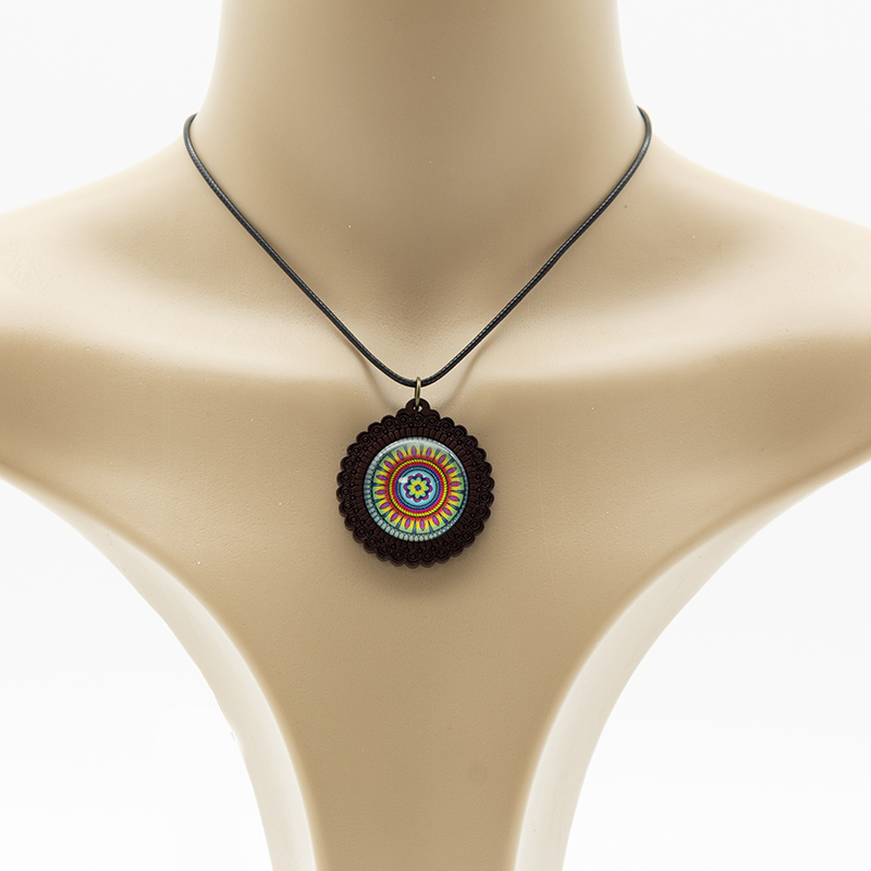 Ethno Halsketten aus Holz mit Glas Cabochon
