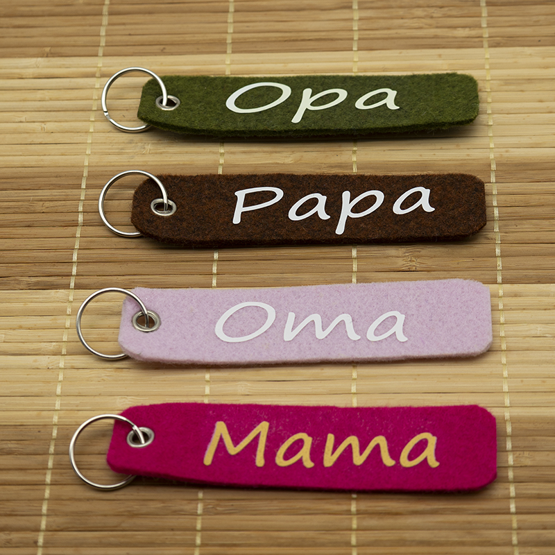 Handgefertigte Schlüsselanhänger aus Filz mit individuellen Texten
