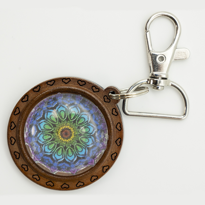 Schlüsselanhänger aus Holz mit Glas Cabochon