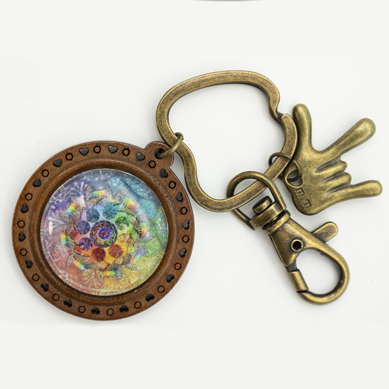 Schlüsselanhänger aus Holz mit Glas Cabochon