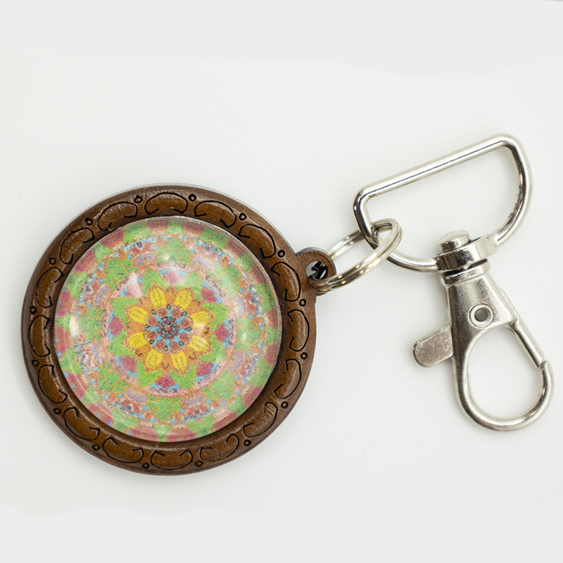 Schlüsselanhänger aus Holz mit Glas Cabochon