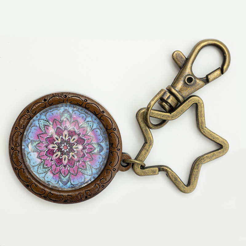 Schlüsselanhänger aus Holz mit Glas Cabochon
