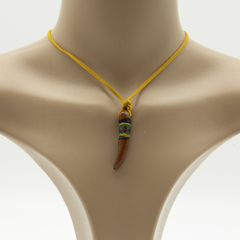 Handgefertigter Tonschmuck mit Lederband.
