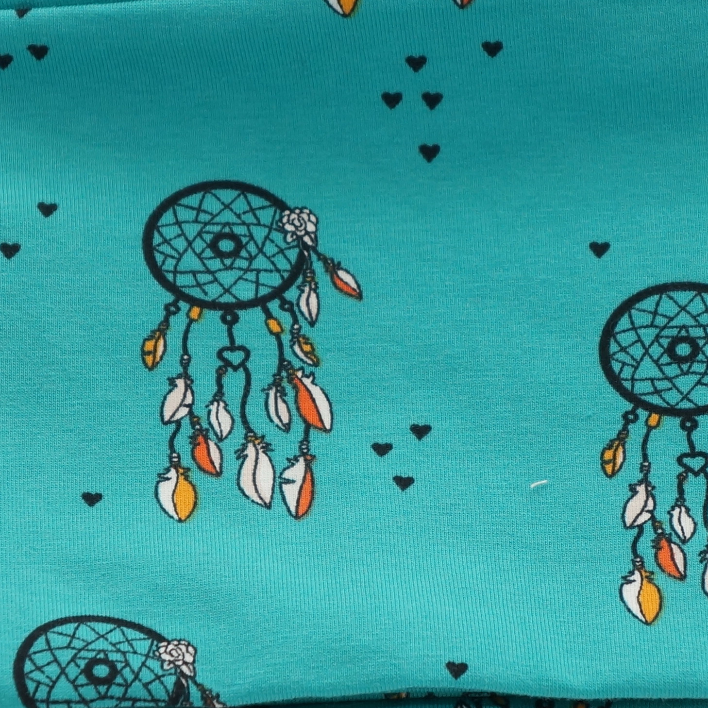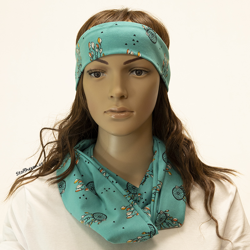 Damen Stirnband und Schal-Loop , genäht, Jersey türkis mit Traumfänger
